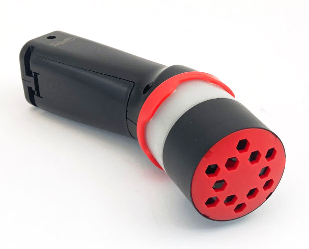 音量は最大125dBで、3段階に調節可能。フラッシュライトは良く目立ち警戒感のある赤青交互点滅となっています。