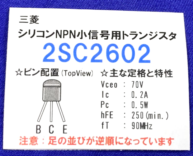 | 品名/型番 : | 【販売終了】NPN小信号用トランジスタ 70V 200mA 500mW (100個入) ■限定特価品■ /2SC2602-100P |