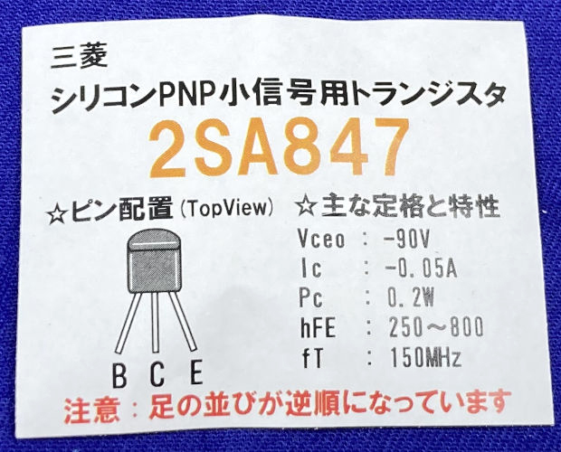 | 品名/型番 : | PNP小信号用トランジスタ -90V -50mA 200mW (50個入) ■限定特価品■ / 2SA847-50P |