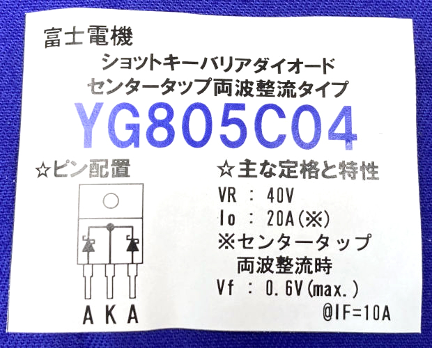 | 品名/型番 : | 40V 20A ショットキーバリアダイオード カソードコモン (10個入) ■限定特価品■ / YG805C04R-10P |