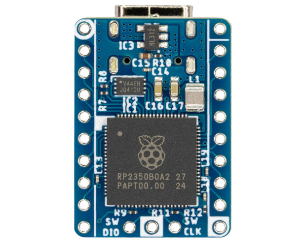 RP2350B に搭載されている8ch のアナログ入力ポートと8ピンのGPIOピンを外部ピンに接続したので、コンパクトながら応用範囲の広い構成となっています。