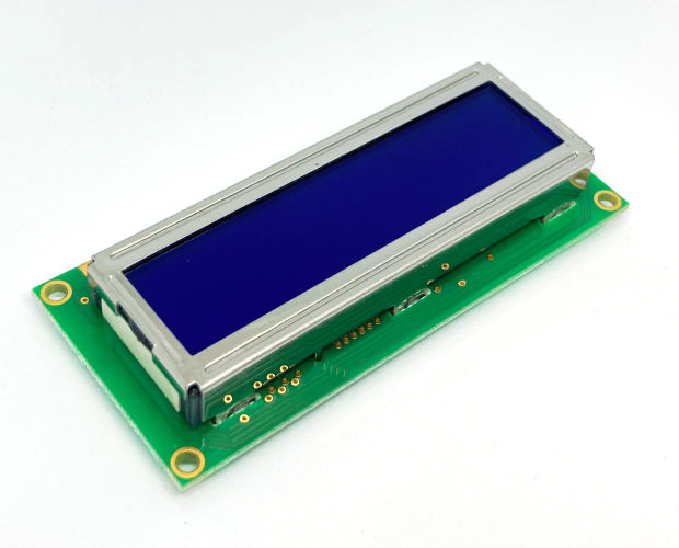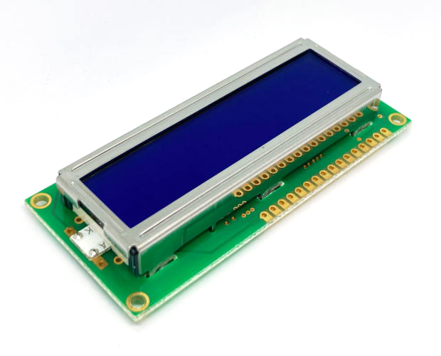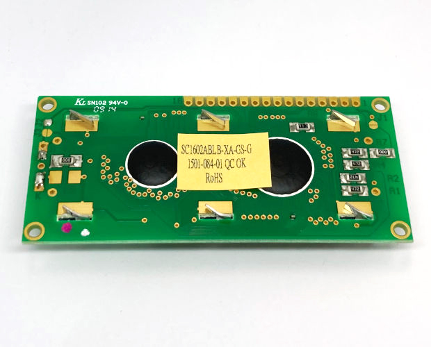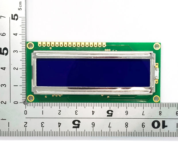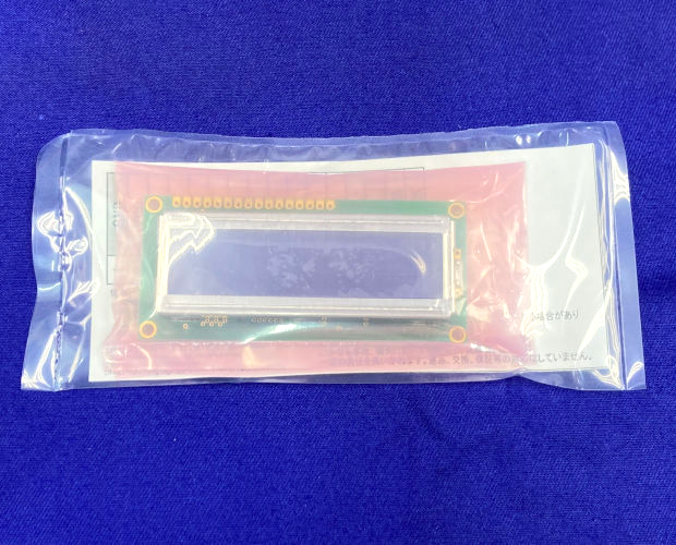 黒地に黄緑の文字が浮かび上がる反転タイプのカラー・キャラクタLCDモジュールです。