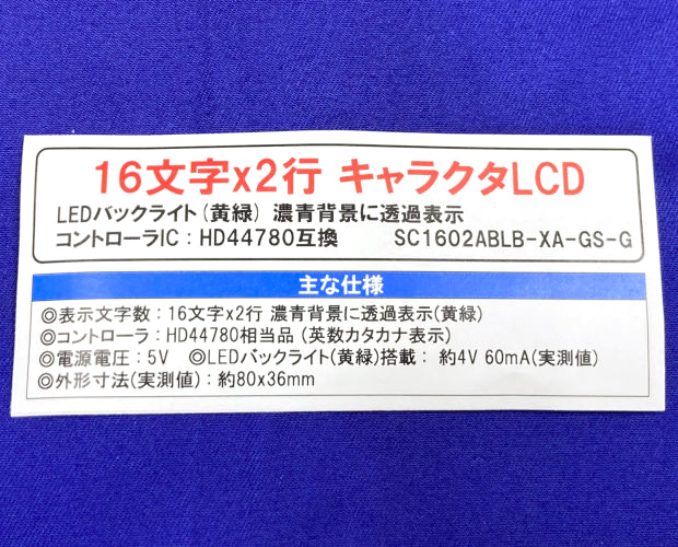 ●コントローラ:HD44780相当品(英数カタカナ表示)