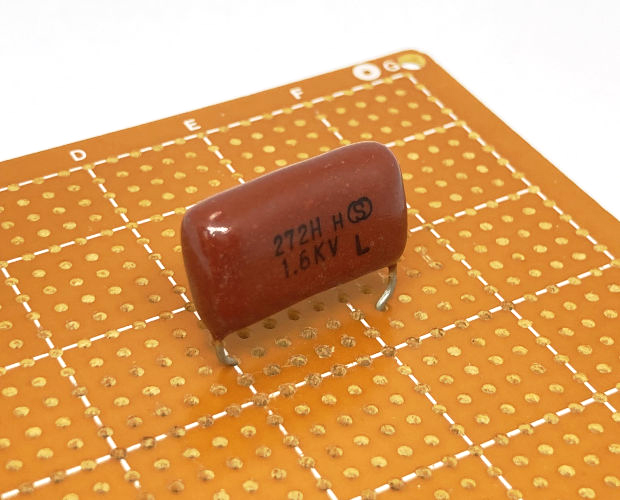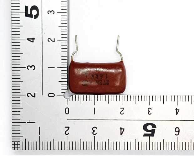 神栄キャパシタのフィルムコンデンサです。1600V 2700pF。