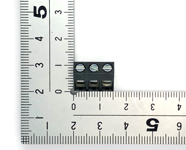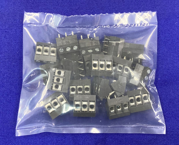 基板に対して45度の角度で電線を接続する端子台です。端子ピッチ5mm。3ピンタイプ。