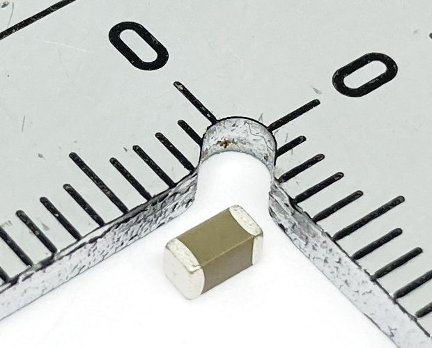 表面実装用の積層セラミックコンデンサ 6.3V 22μFです。3216(1206)サイズ。
