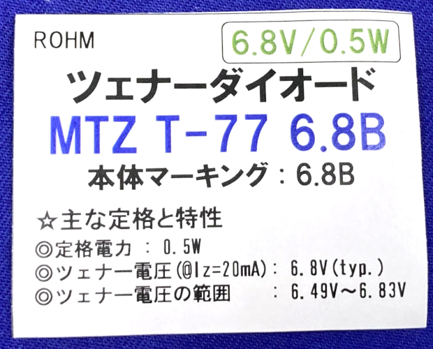 | 品名/型番 : | ツェナーダイオード 500mW 6.8V (100個入) ■限定特価品■ / MTZ T-77 6.8B-100P |