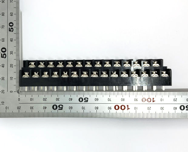 オサダのプリント基板実装用端子台ネジタイプです。端子間ピッチ7.62mm。2段29極。