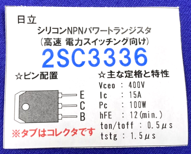 | 品名/型番 : | NPNパワートランジスタ 400V 15A 100W (10個入) ■限定特価品■ / 2SC3336-10P |