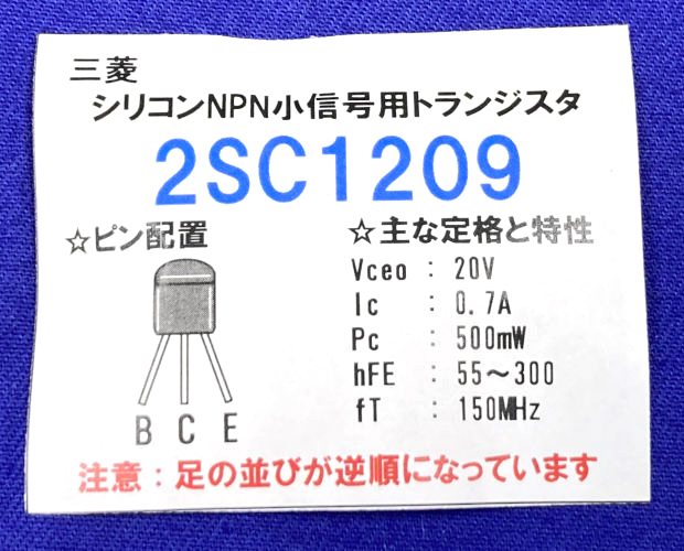 | 品名/型番 : | NPNトランジスタ 20V 0.7A 500mW (50個入) ■限定特価品■ / 2SC1209-50P |
