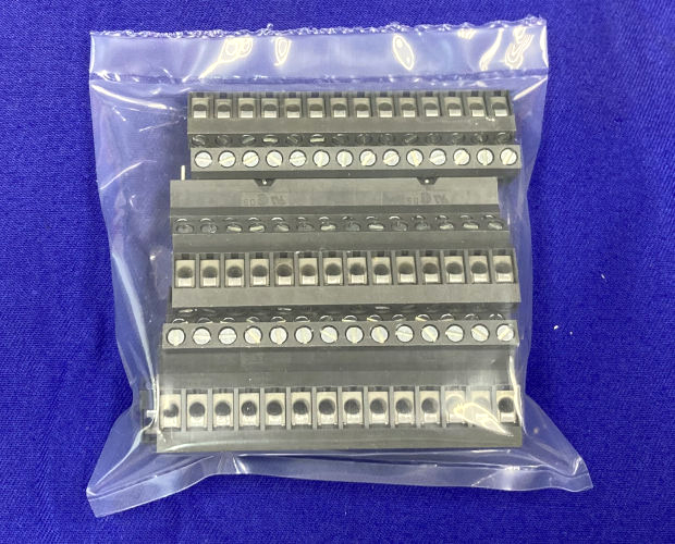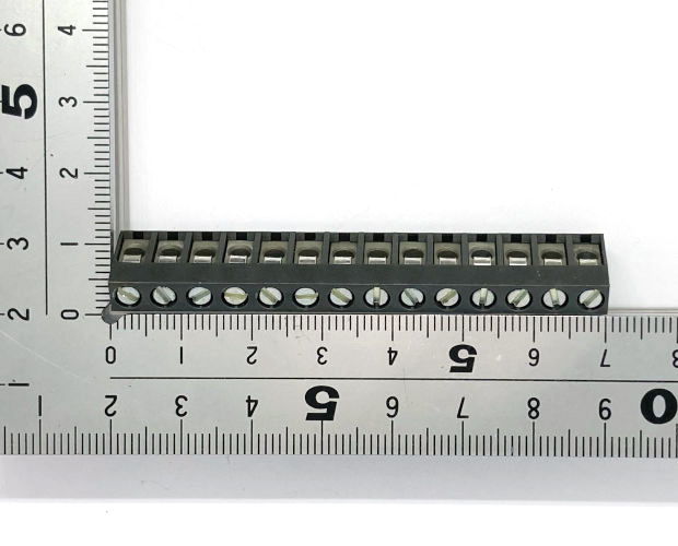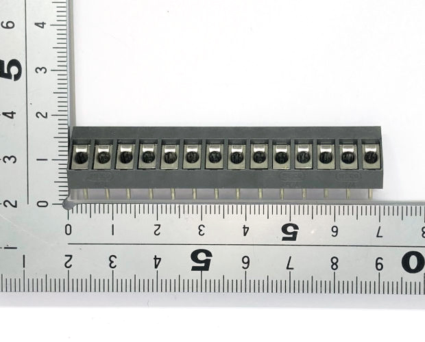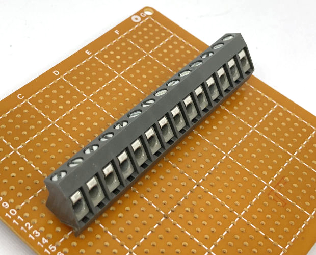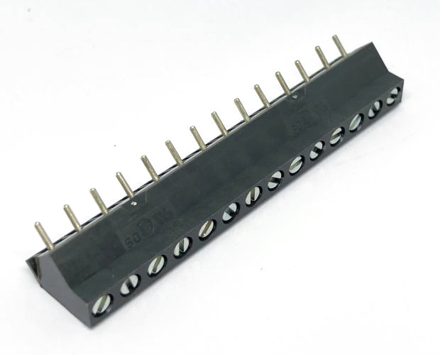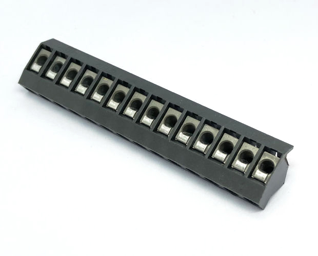 基板に対して45度の角度で電線を接続する端子台です。端子ピッチ5mm。14ピンタイプ。