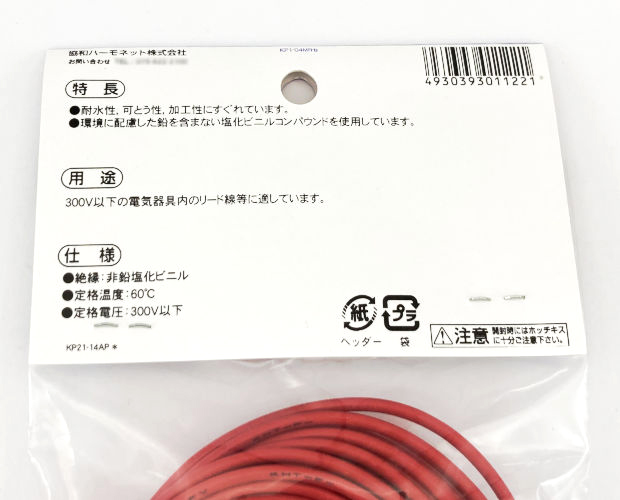 | 品名/型番 : | 単芯ビニルコード 0.75SQ 10m 赤 / VSF 0.75SQ L-10 RD |