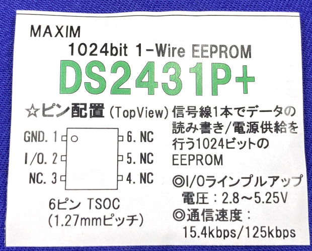 DS2431は、1024ビットの1-Wire EEPROMチップであり、各256ビットの4つのメモリページで構成されています。